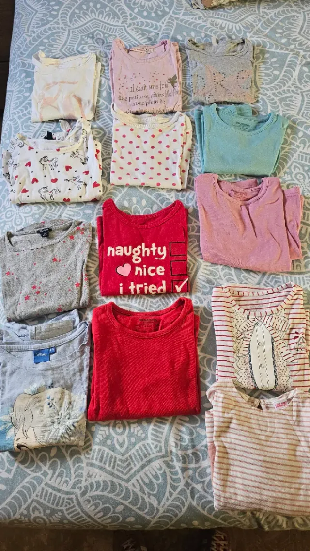 Detalles del productoConjunto de 11 prendas de ropa para niña en talla 4 años. Variedad de estilos y colores.