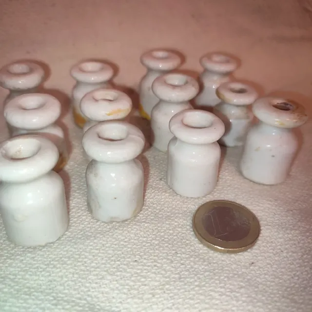 Conjunto de doce aisladores antiguos de porcelana de tamaño mediano. Originales - Material: Porcelana. - Uso: Eléctrico.