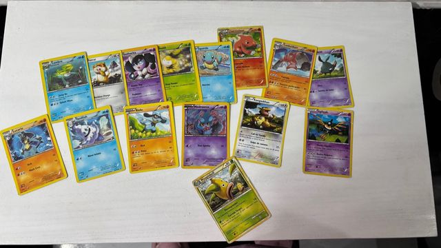 Detalles del productoColección de 15 cartas Pokémon variadas, ideales para coleccionistas o para jugar.