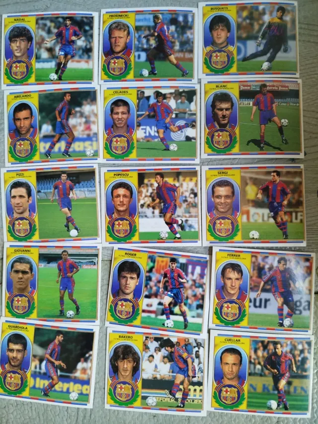 Detalles del productoColección de cromos de la Liga Este de la temporada 1996/1997 del F.C. Barcelona. Incluye jugadores como Pizzi, Guardiola, Ferrer, Popescu, Roger, Nadal, Sergi, Prosimercki, Celades, Bakero, Abelardo y Blanc.