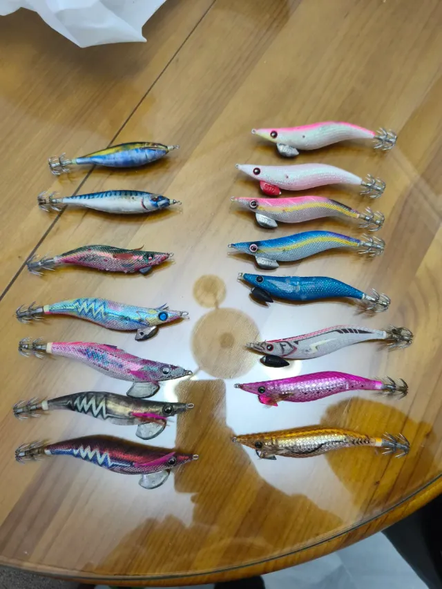 Detalles del productoConjunto de 15 señuelos para pesca de calamar (eging).