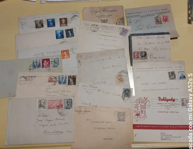 Conjunto de 15 sobres que han sido utilizados y circulados. - Incluye sobres de diferentes épocas y procedencias. - Cada sobre presenta sellos y matasellos visibles.