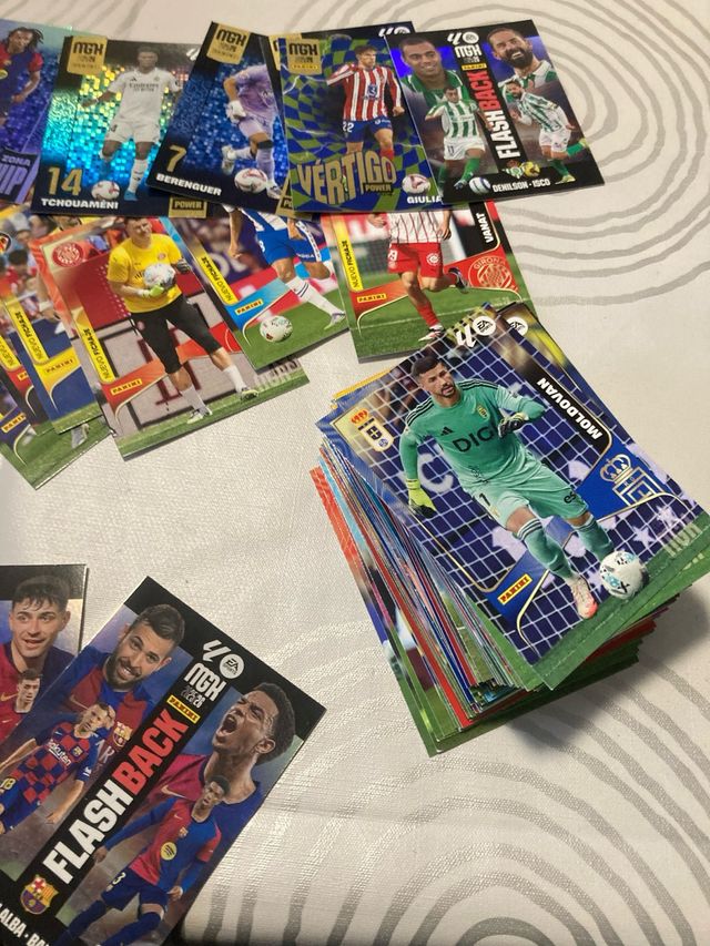 - Algunas cartas muestran jugadores como Tchouaméni, Berenguer, Giuliá, Denilson, Isco, Moldovan y Vanat.