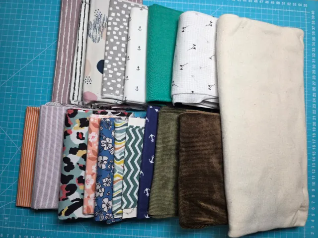 Detalles del productoConjunto de 18 retales de tela con diversos estampados y texturas.