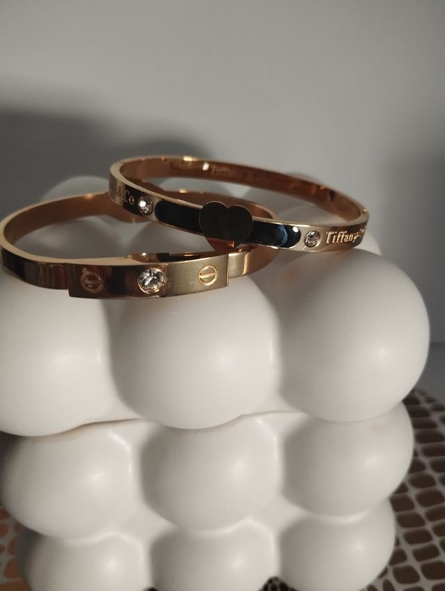 Lote 2 Brazaletes Acero Dorado