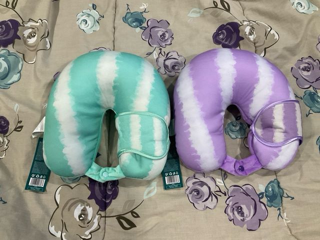 Lote 2 cojines de viaje con antifaces a estrenar .