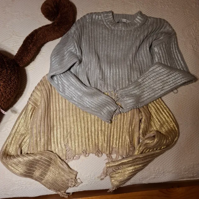 Lote 2 Jerséis crop de Zara Dorado y Plateado
