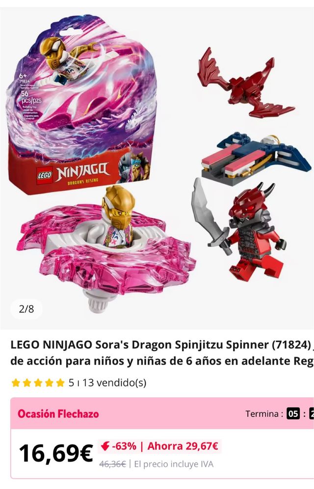 Lote de 2 Set de construcción LEGO Ninjago Sora's Dragon Spinjitzu Spinner (71824).