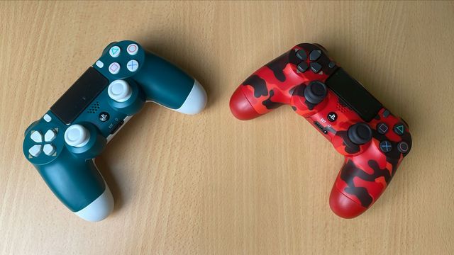 Lote 2 mandos PS4 verde petróleo + rojo camuflaje