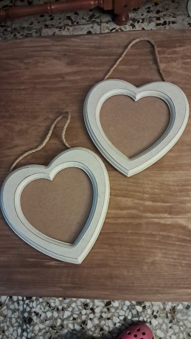 Conjunto de dos marcos decorativos con forma de corazón. - Medidas: 18x26x1,5 cm.