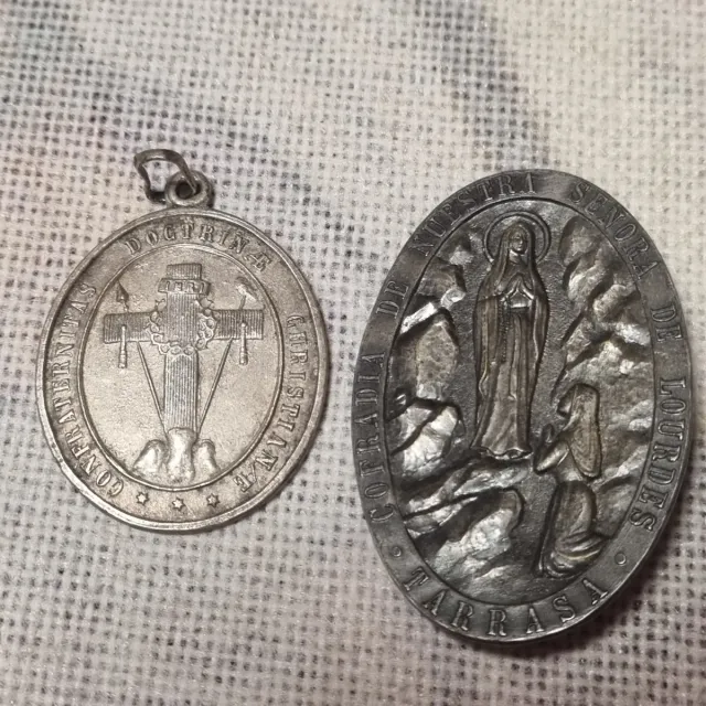Detalles del productoLote 2 medallas religiosas antiguas – Cofradía Lourdes Tarrasa y Confraternitas Doctrinae Christianae