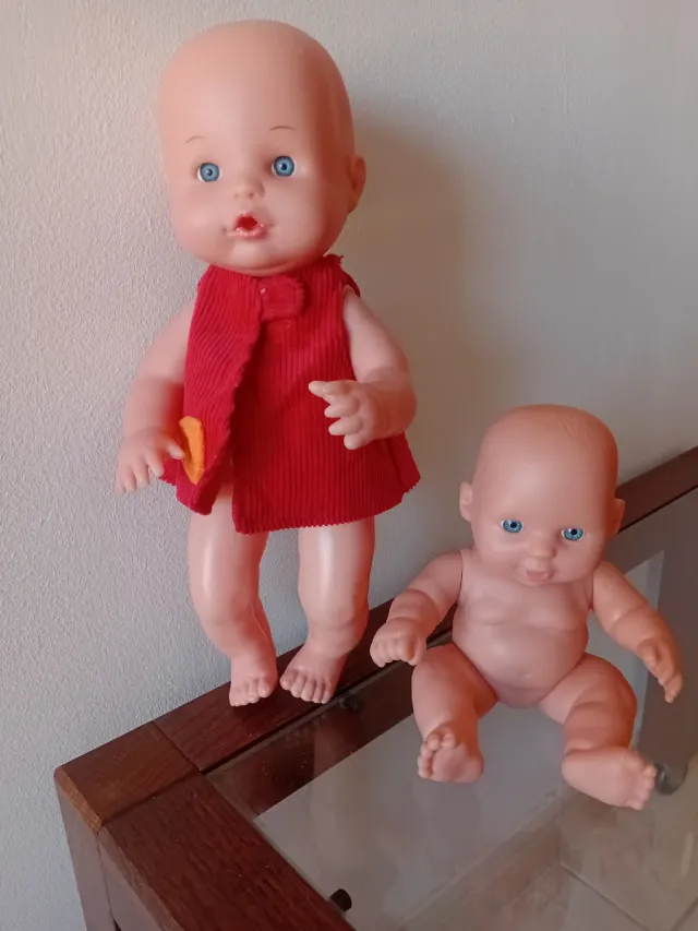 Detalles del productoLote de dos muñecas bebé en perfecto estado. Con articulaciones movibles. Miden 27 y 18 cms respectivamente. Hay tres fotos. Hago envíos y lotes de descuento por la compra de más de 1 producto de mi perfil.
