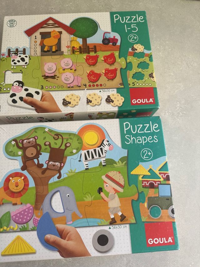 Detalles del productoConjunto de dos puzzles de madera de la marca Goula, diseñados para el aprendizaje.
