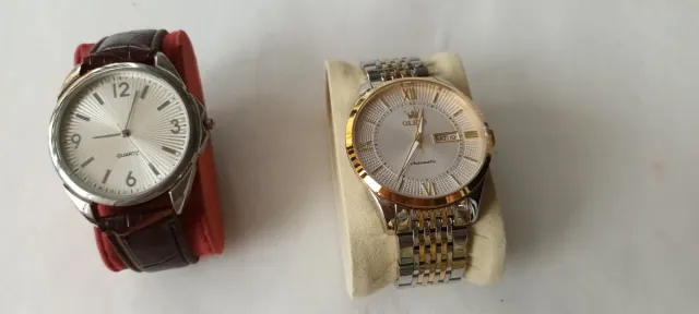Lote 2 relojes hombre oro y plata, Quartz y OLEVS