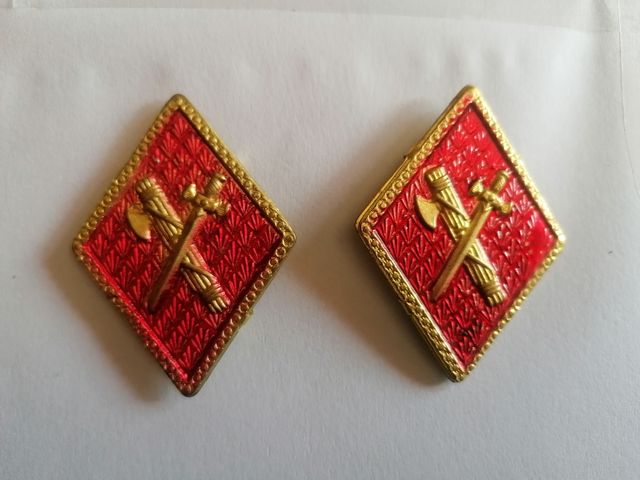 Lote de 2 insignias antiguas originales para la solapa de los uniformes de la Guardia Civil. Buen estado. Precio: 10€ las 2