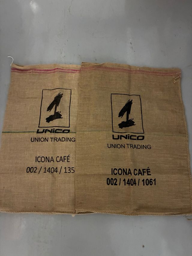 Detalles del productoSe venden dos sacos de yute con el logo Proyecto Único.