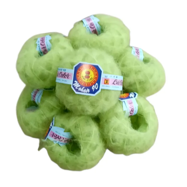 Detalles del productoLote de 20 ovillos de lana Mohair 516 en un llamativo color verde fosforito. Perfectos para tus proyectos de tejido.