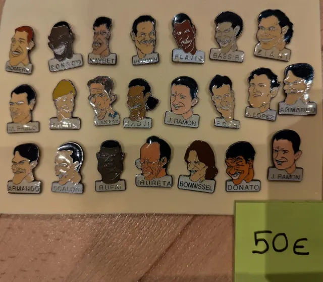Detalles del productoColección de 20 pins de jugadores del Superdepor. Cada pin representa a un jugador con su nombre.