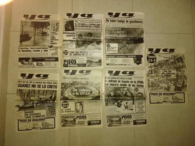 Detalles del productoLote de periodicos dedicados al 23F. Incluye: Siete periodicos publicados en agosto de 1981 donde se habla del sumario del intento de golpe de estado del 23 F / Tres periodicos Diario 16 publicados el 30 de abril, 1 y 2 de mayo de 1981 en el que bajo el nombre "La Conspiración" tratan el tema del intento de golpe de estado del 23 F / Edición El País Semanal del 8 de marzo de 1981 / Once periodicos dedicados al inteto de golpe de estado del 23 F. Son del 21,22, 25, 26 y 27 de febrero de 1981, 4 de marzo de 1981, 8 de marzo de 1981, 14 agosto 1981, 19 agosto 1981, 19 febrero 1982 (Diario 16), 12 octubre de 1982. #Hemeroteca