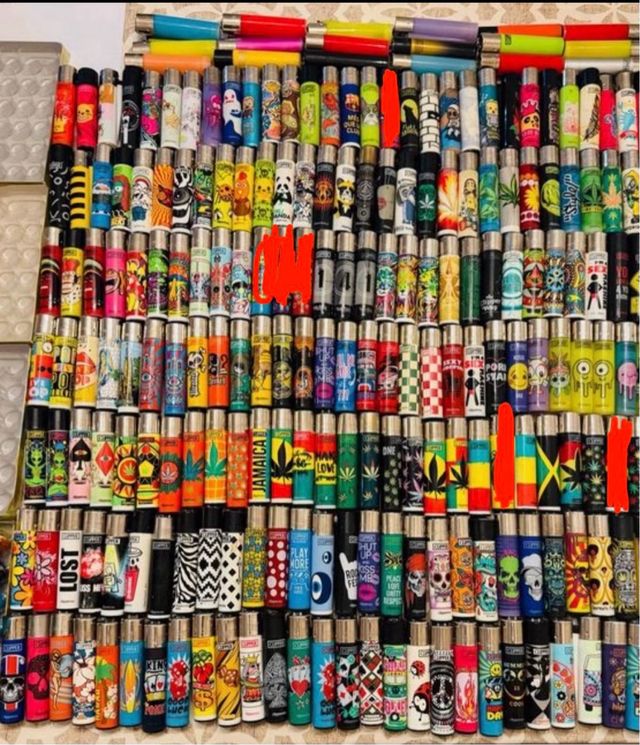 Lote de 223 encendedores Clipper con diversos diseños. - Diseños variados y coloridos. - Marca Clipper reconocida. - precio por unidad 0,60