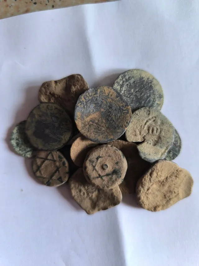 Detalles del productoConjunto de 24 monedas antiguas españolas, tal como se encontraron.