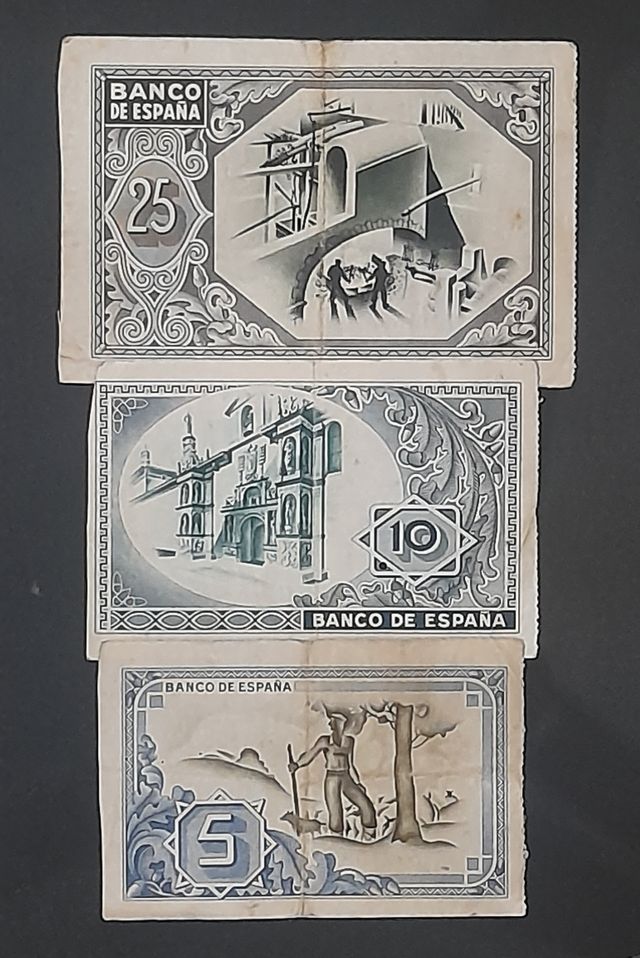 Tres billetes de 5, 10 y 25 Pesetas 1937 (Bilbao)