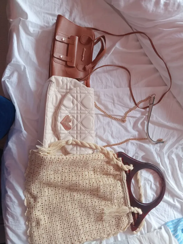 Lote 3 bolsos: marrón, beige y crema