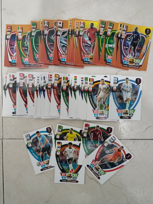 Detalles del productolote de 94 cromos mundial Qatar 2022 de todo tipo..titán y fan favourite.