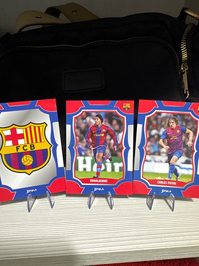 Detalles del productoLote de 3 cromos del FC Barcelona. Incluye el escudo del club, Ronaldinho y Carles Puyol.