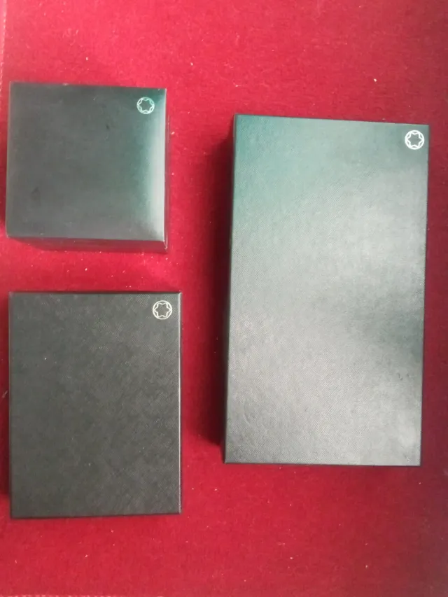 Se vende lote de tres estuches de la marca Montblanc. - Diseño elegante en color negro. - Incluye el distintivo de la marca en cada estuche.