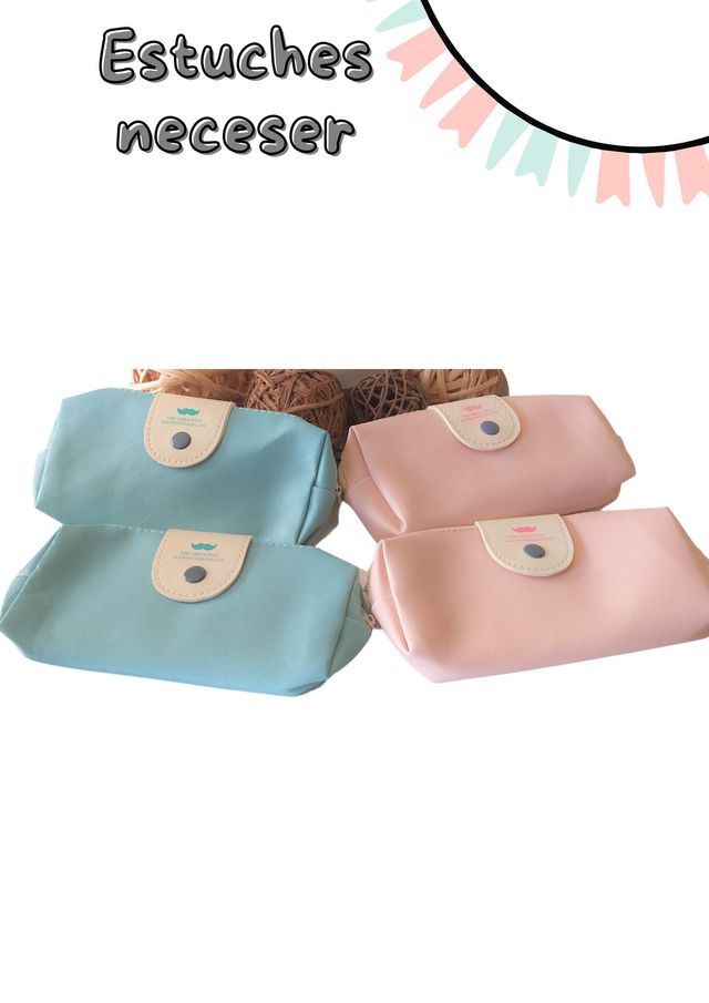 Detalles del productoLote de 3 estuches (2 rosas y 1 azul) con cremallera y cierre de corchete, imitación piel en colores pastel y beige. Ideales para personalizar. Se pueden utilizar como estuche , neceser, funda de gagas. Nuevos a estrenar. Todos por 6€.
