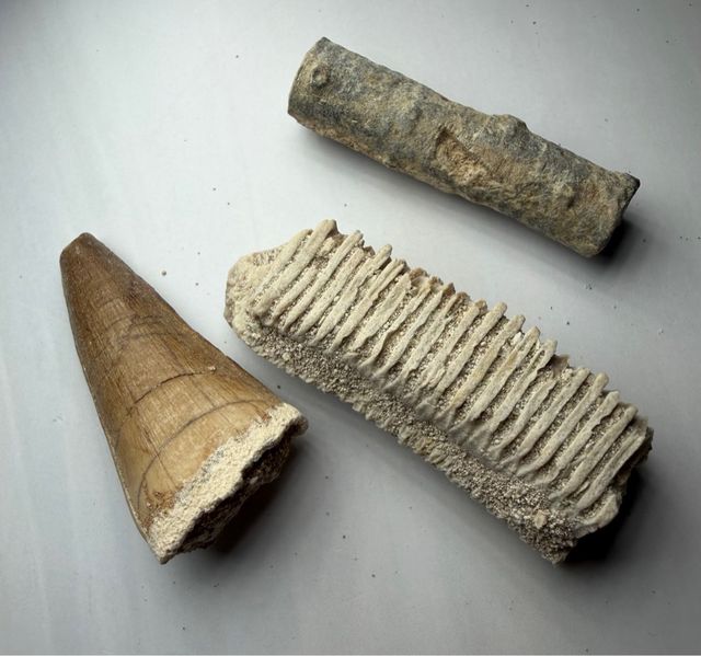 Lote 3 Fósiles: Diente Mosasaurio y más