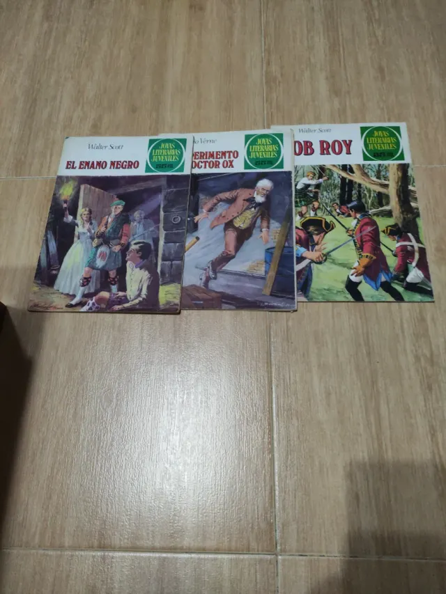 Conjunto de tres libros clásicos de literatura juvenil. - El Enano Negro (Walter Scott) - El Experimento del Doctor Ox (Julio Verne) - Rob Roy (Walter Scott)