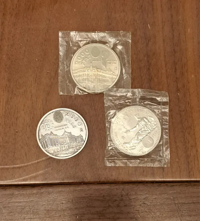 Detalles del productoLote de 3 monedas de 2000 pesetas plata 925 milésimas de peso 18 gramos del rey Juan Carlod I.