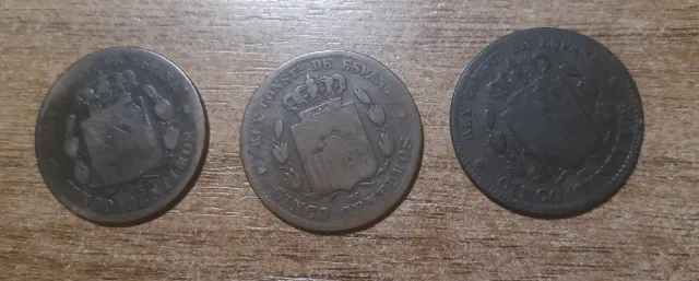Lote 3 Monedas de Alfonso XII de 5 ctms