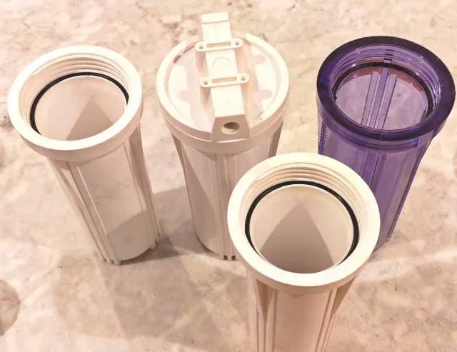 Detalles del productoLote de portafiltros de 10 pulgadas procedentes de liquidación de stock de negocio de tratamiento de agua.