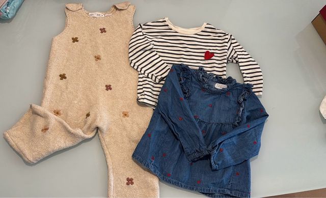 Detalles del productoConjunto de tres prendas para bebé niña.