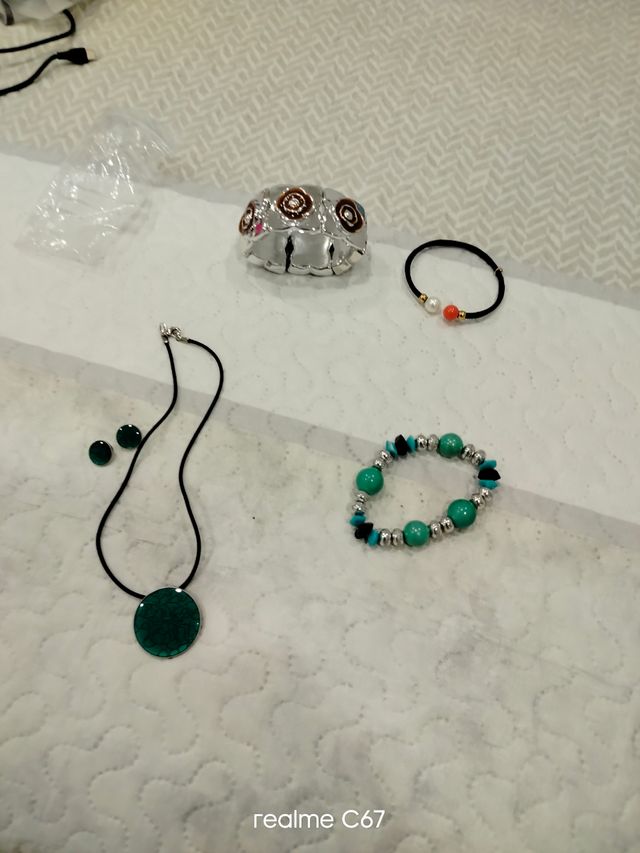 LOTE 3 pulseras+ collar y pendientes artesanos