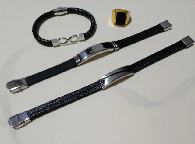 Lote 3 Pulseras y Anillo Acero Inoxidable