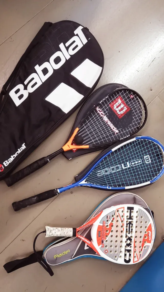 Lote 3 raquetas (padel, squash, tenis)