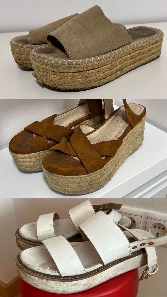 Lote 3 sandalias cuña: beige, marrón, blancas