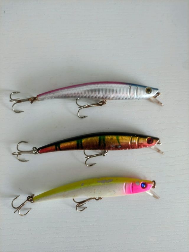 Detalles del productoConjunto de tres señuelos para pesca spinning. Diseñados para atraer peces con su movimiento y apariencia.