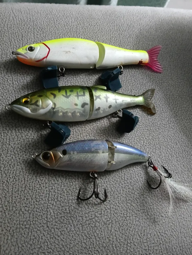 Conjunto de tres señuelos de pesca tipo swimbait.