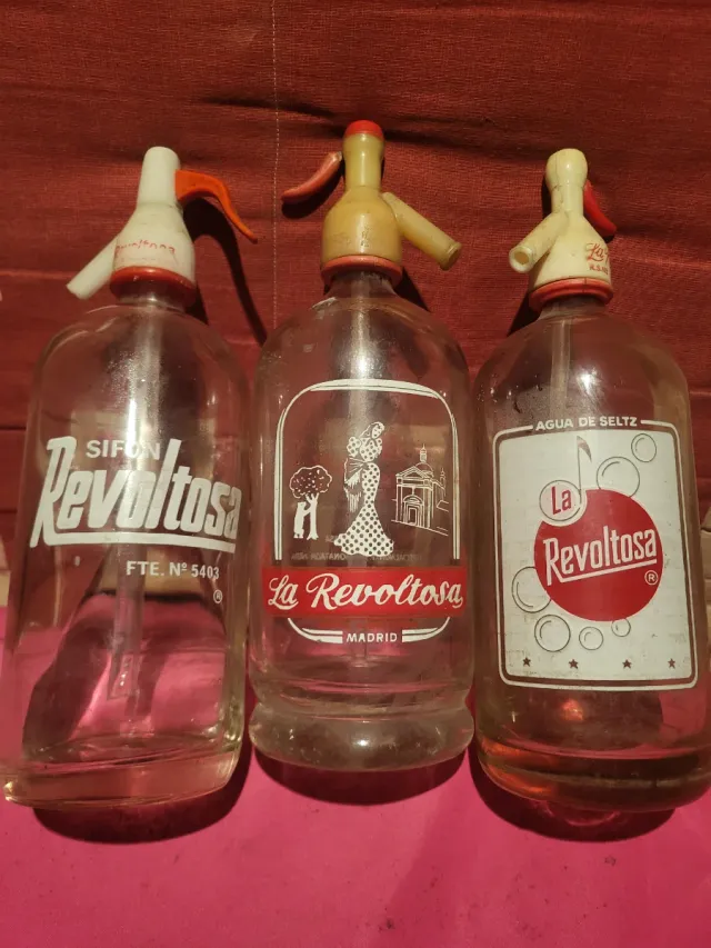 Detalles del productoConjunto de tres sifones antiguos de la marca La Revoltosa.