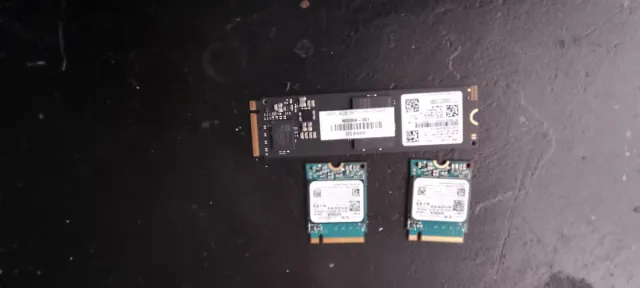 Se vende lote de 3 unidades SSD NVMe M.2. 1 Samsung 512 gb gen 4 2 kioxia 256 gb - Formato M.2 2280. - Interfaz NVMe.