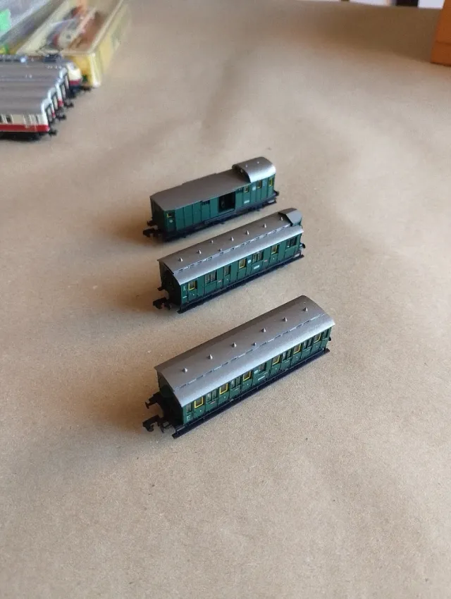 Detalles del productoLote 3 vagones ARNOLD, en buen estado, con todos sus topes (falta 1 tope)y ganchos, para maqueta tren escala N, se puede mandar más fotos y video. Las fotografías son parte de la descripción. Envío por walapop elegir CORREOS