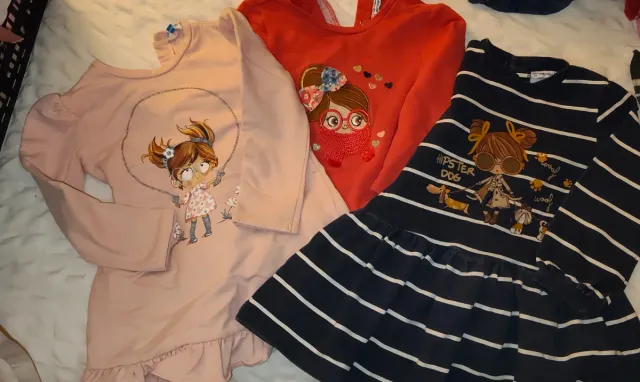 Lote de tres vestidos de manga larga para niña de la marca Mayoral. Talla 36 meses.