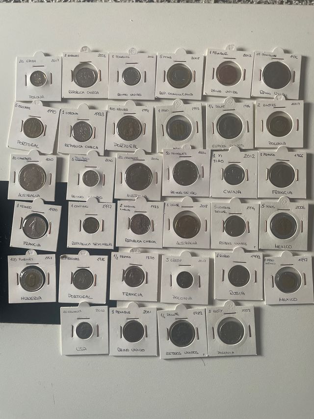 Colección de 36 monedas de diferentes países. - Monedas de Europa, América y Asia. - Diversos años y denominaciones. - Ideal para coleccionistas.