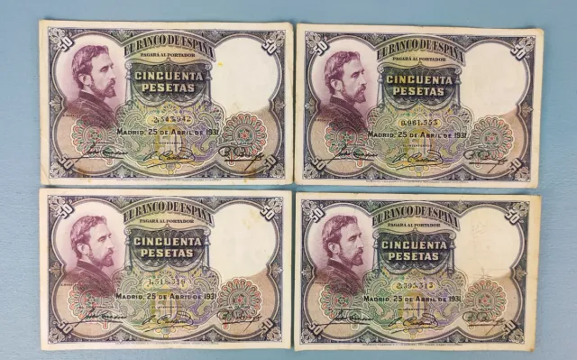Lote 4 Billetes 50 Pesetas 1931 El Banco de España