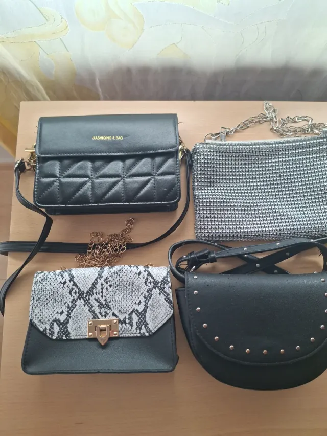Lote 4 Bolsos Pequeños Negro y Plateado